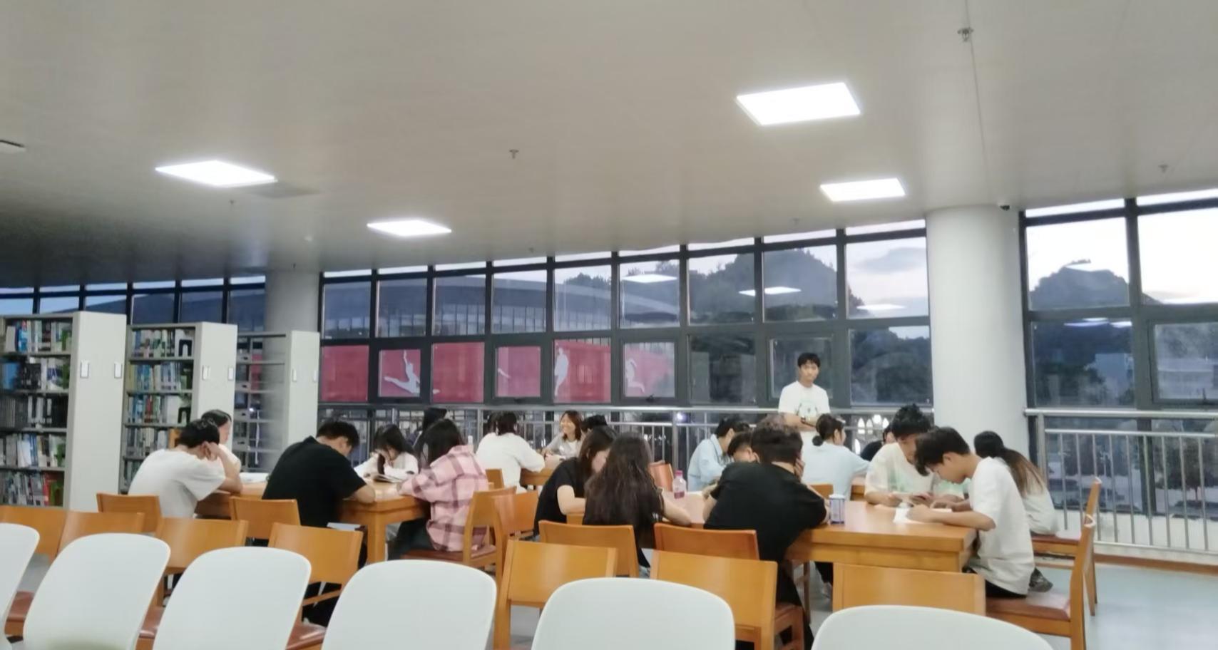 潘慧明老师带领同学们在图书馆寻找喜爱的书籍,阅读后分享心得和理解,让大家在阅读与交流中收获知识、启迪思想。