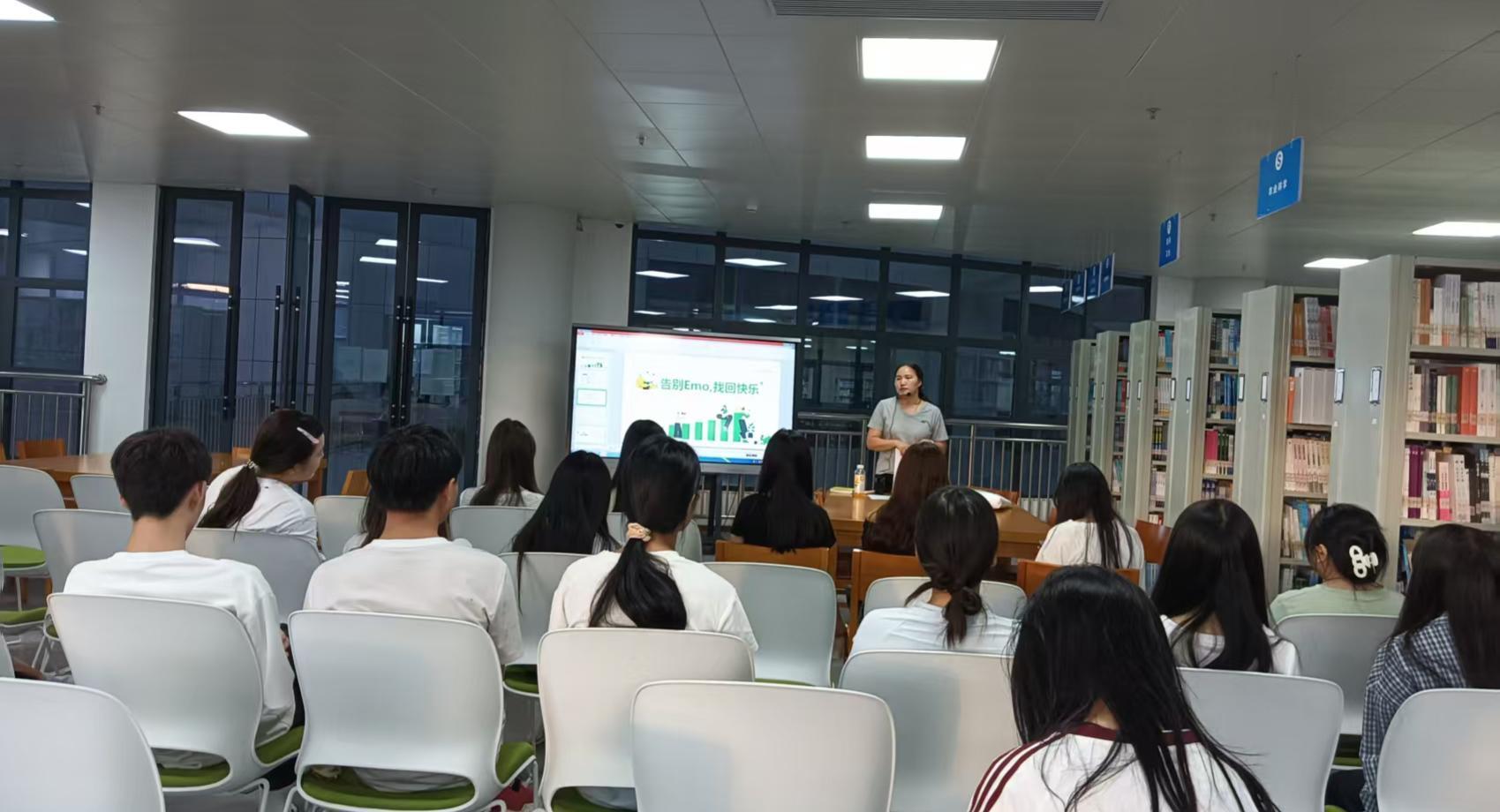 张贺老师分享《蛤蟆先生去看心理医生》,随后引导同学们分享各自喜爱的书籍并展开讨论,在书籍交流中,让大家收获心理认知与阅读乐趣的双重成长。